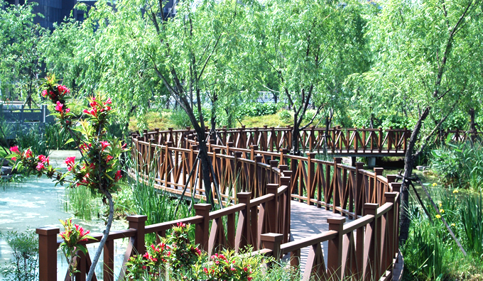 青林灣公園最大的特色就是擁有很多傳統(tǒng)江南水景,馬家河橫貫公園,西邊緊挨著黃家河,再往北眺就是姚江。園內(nèi)的每處景觀,幾乎與水相依,主體結(jié)構(gòu)更是以水為帶,蜿蜒而來(lái)。