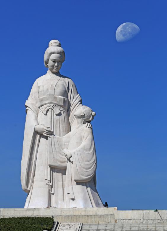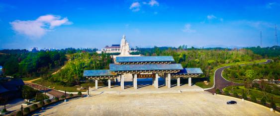 “母愛之門”高22.3米,寬86.7米,采用中華傳統(tǒng)的斗拱結(jié)構(gòu)建造,目前是江西省最大的景觀大門,也是全國最大的以斗拱結(jié)構(gòu)建造的大門;中華賢母園標(biāo)志性建筑是一對母子深情對視的主題雕塑,設(shè)計(jì)方案完成高29.8米,材料為淺黃色天然花崗巖石料,雕塑極具感染力和沖擊力。
