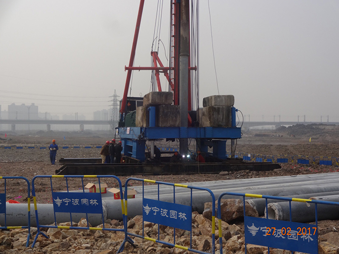 由寧波市園林工程有限公司承建的寧波市盆景園工程II標(biāo)段從2017年2月17日正式開工至今,已完成臨時設(shè)施的搭設(shè)和安全圍擋等設(shè)施和標(biāo)示標(biāo)牌。在幾日緊張的準(zhǔn)備工作之后,我公司迎來了整個基礎(chǔ)工程的重要環(huán)節(jié)—試樁工作。